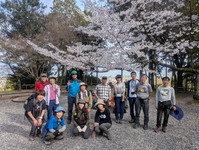 ここでは桜満開でしたのて、背景に琵琶湖を入れながら集合写真を撮影しました。