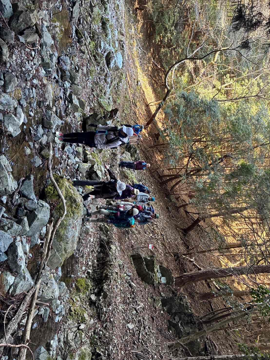 写真の場所よりずっと手前のことですが、W辺さんが、「”恐竜の卵”(のところ)はもう通過したの?」と質問され、I中さんが「少し前に通過しましたよ。」と答えられました。