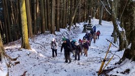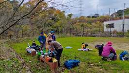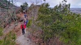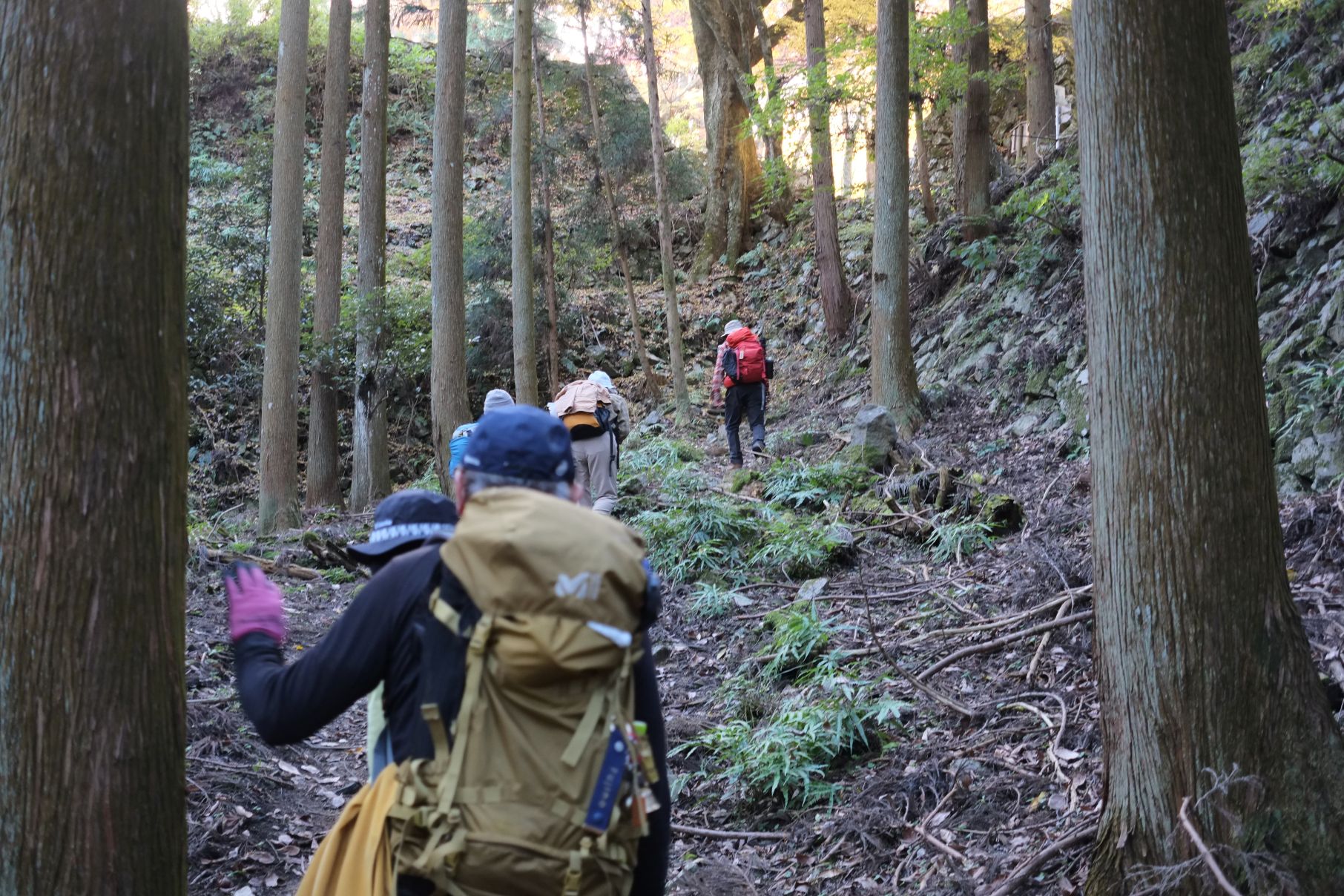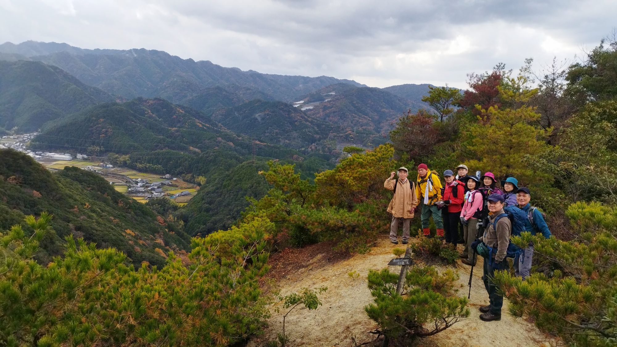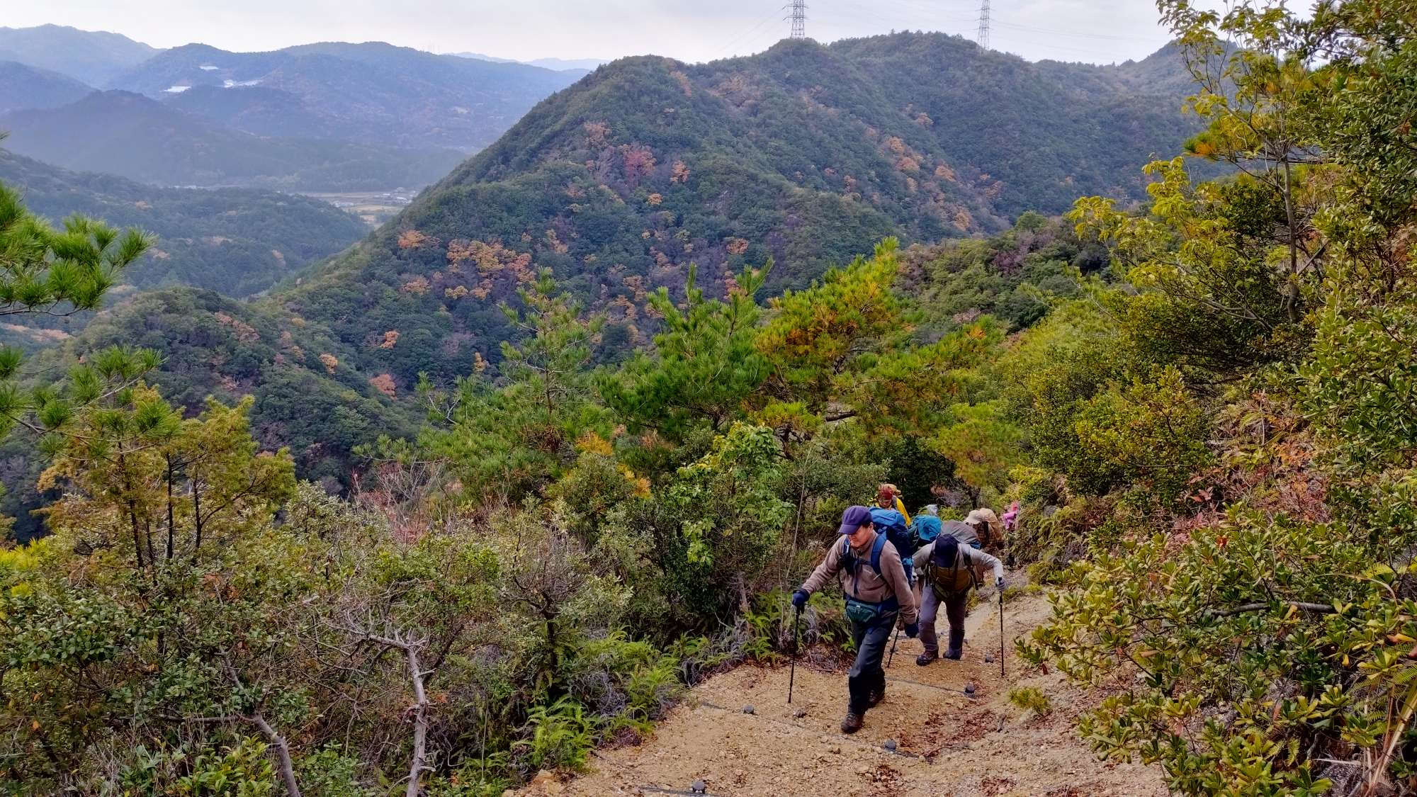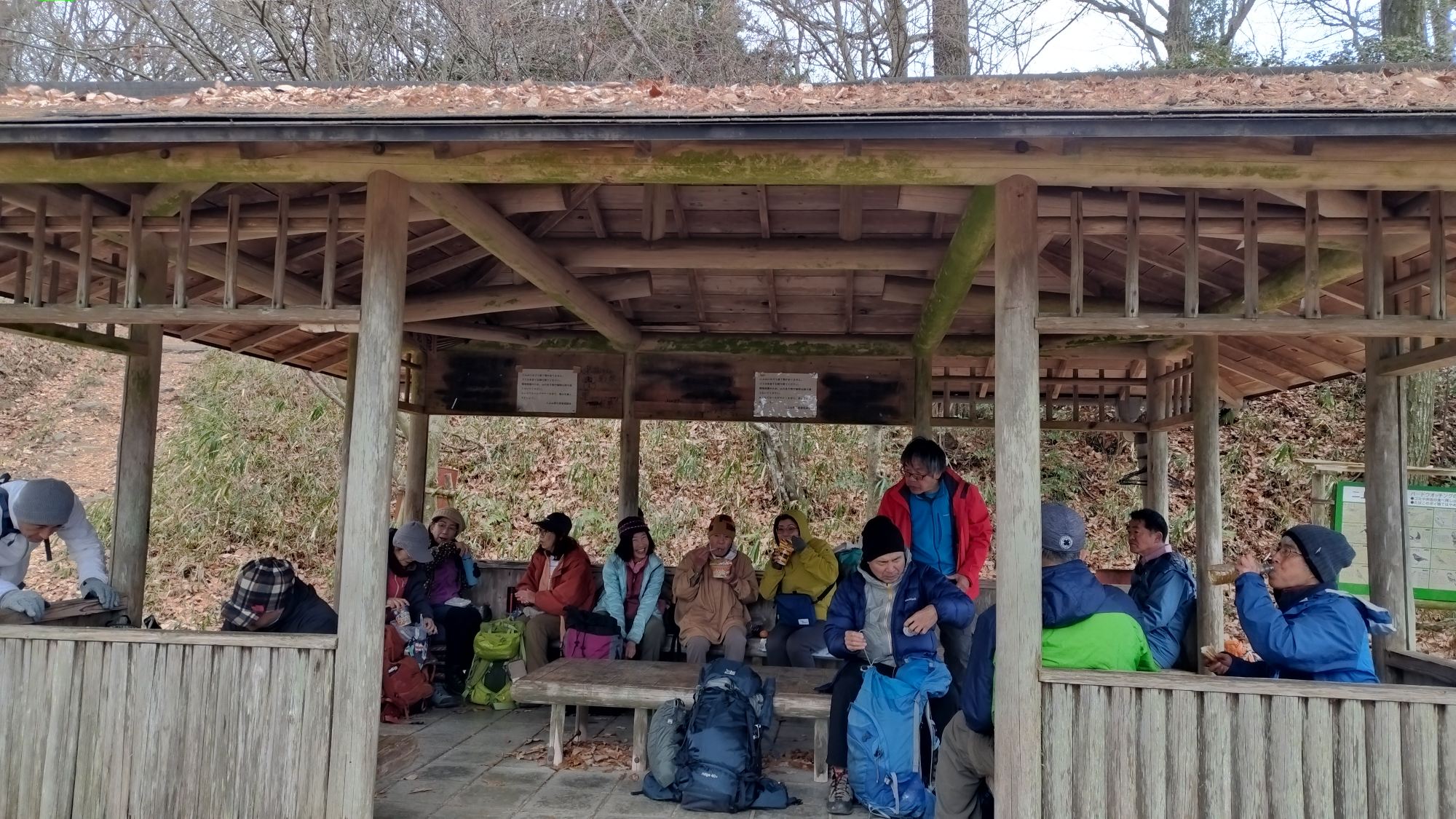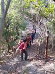 12月14日の雨山例会は、早朝は雨が降っっていましたが、M崎リーダーの読み通り、歩いている間は雨が降らず、昼過ぎからは晴れ間ものぞきました。メインの行先が、313mと低い山なので、簡単に登れると思っていましたが、途中で一回下りて登り返しがあったことと、段差の大きな階段が随所にあったことで、最高地点の標高の割に歩きごたえがありました。