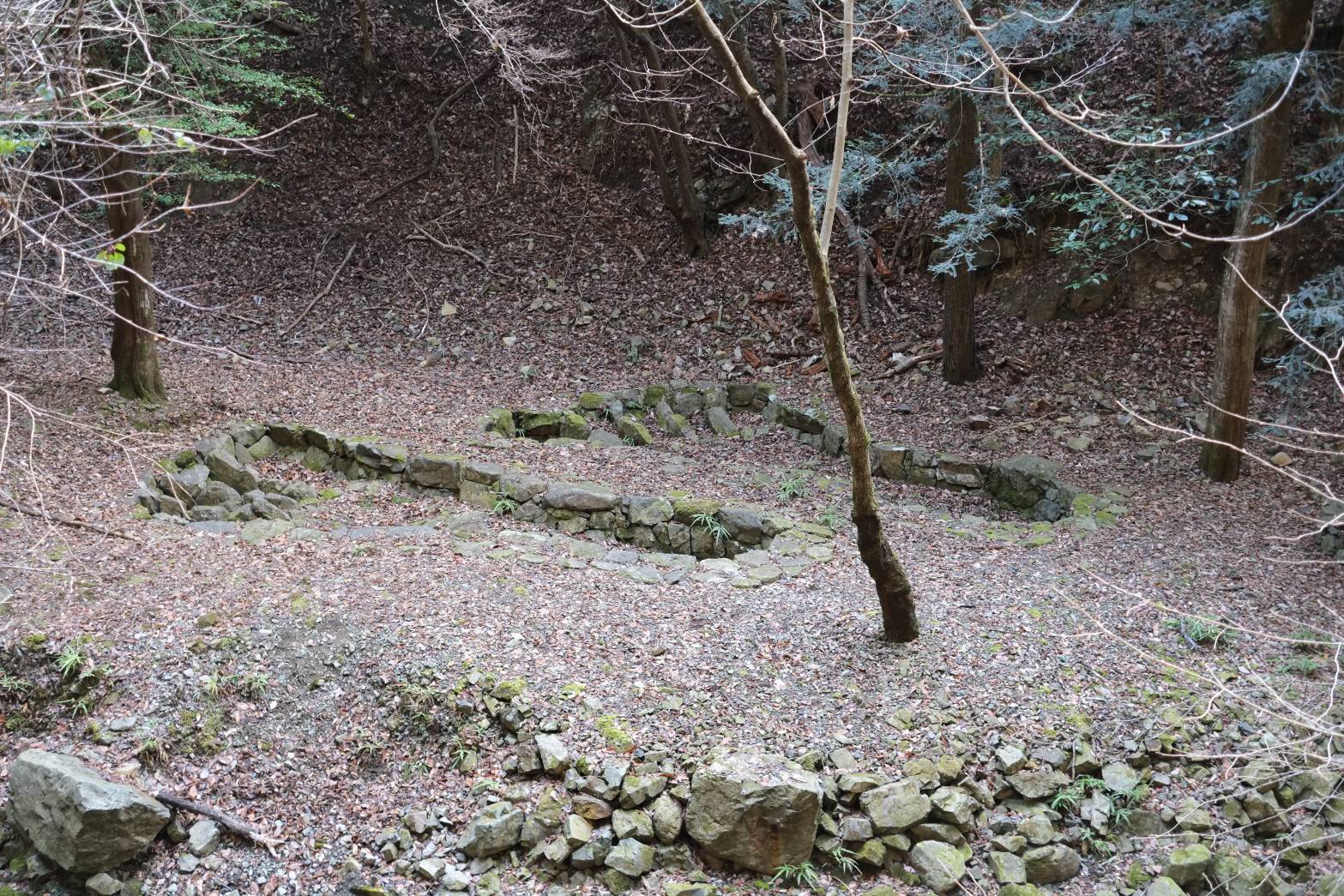 当日の行程中、奥辺峠の手前の少しの区間は道幅が狭く、谷に向かって傾斜していたため慎重に歩く必要がありました。