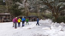 金剛山の頂上付近の社務所の手前にある、金剛山転法輪寺境内にさしかかると雪の広場がありました。