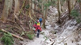 大堂越を出発してある程度下った時、O橋さんが左手の尾根伝いに人が上り下りしているのを指差され、ケーブル廃線跡を歩いていると言って、ヤマレコの「みんなの足跡」を示されました。「みんなの足跡」では、廃線跡を多くの人が通っていることを表示していて、一度廃線跡を通ってみたいと思いました。